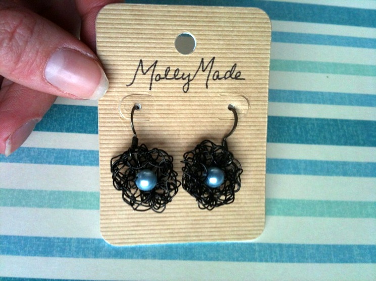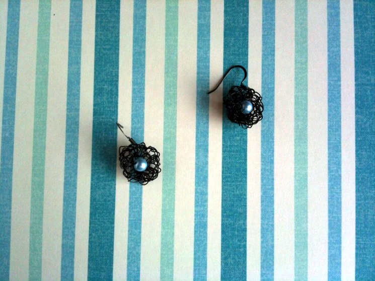 These crochet wire earrings are one of a kind! Each pair you order will have their own unique "nest" shape with a blue pearl center. They're perfectly imperfect!